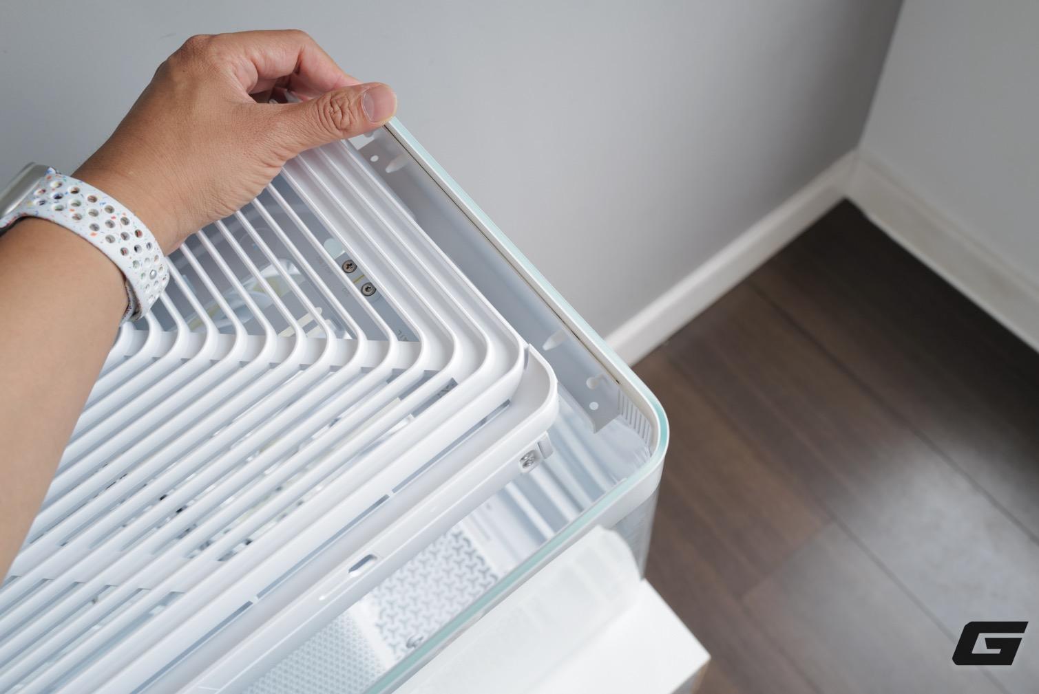 Do cấu trúc, nắp trên không thể tháo rời nếu chưa gỡ ba tấm panel chính; tuy hơi khác thường so với các case truyền thống, nhưng thực tế thao tác này không quá bất tiện.